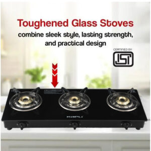 KAPLI Premium Toughened ISI Certified | Black Cooktop | 6mm Heat Resistant Glass | Glass Manual Gas Stove (3 Burners)