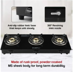 Be the first to review “KAPLI Premium Toughened ISI Certified | Black Cooktop | 6mm Heat Resistant Glass | Glass Manual Gas Stove (3 Burners)”